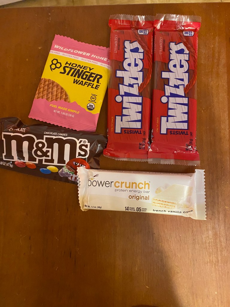 During the long run, I also made sure I had a variety of snacks. I like to have many running snack options. Not the healthiest, but I wanted my muscles to move and not quit on me.